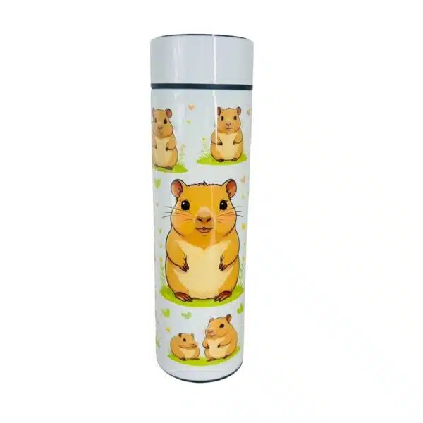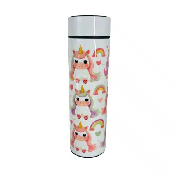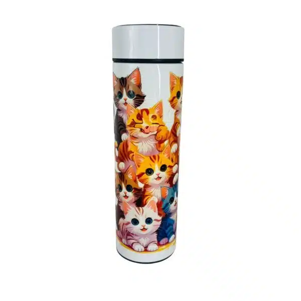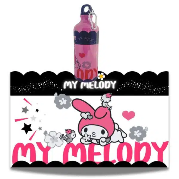 Botella de agua metálica color rosada de alta calidad y terminación, incluye mosquetón de aluminio para colgarla en la mochila o bolso, es a prueba de fugas y tiene una capacidad de 600ml. las dimensiones son 21 cm de alto (incluyendo tapa) por 7 cm de diámetro, Diseño de Hello Kitty. Incluye caja individual.