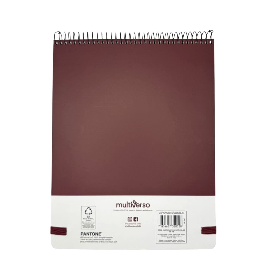 Hermosa croquera Pantone en tonos nature color con elástico para que elijas la que mas te guste, tapa dura, anillado metálico altamente resistente, posee 100 hojas lisas blancas de 80 g/m2., tamaño de la croquera 28,2 x 21,6cm. Producto por unidad.