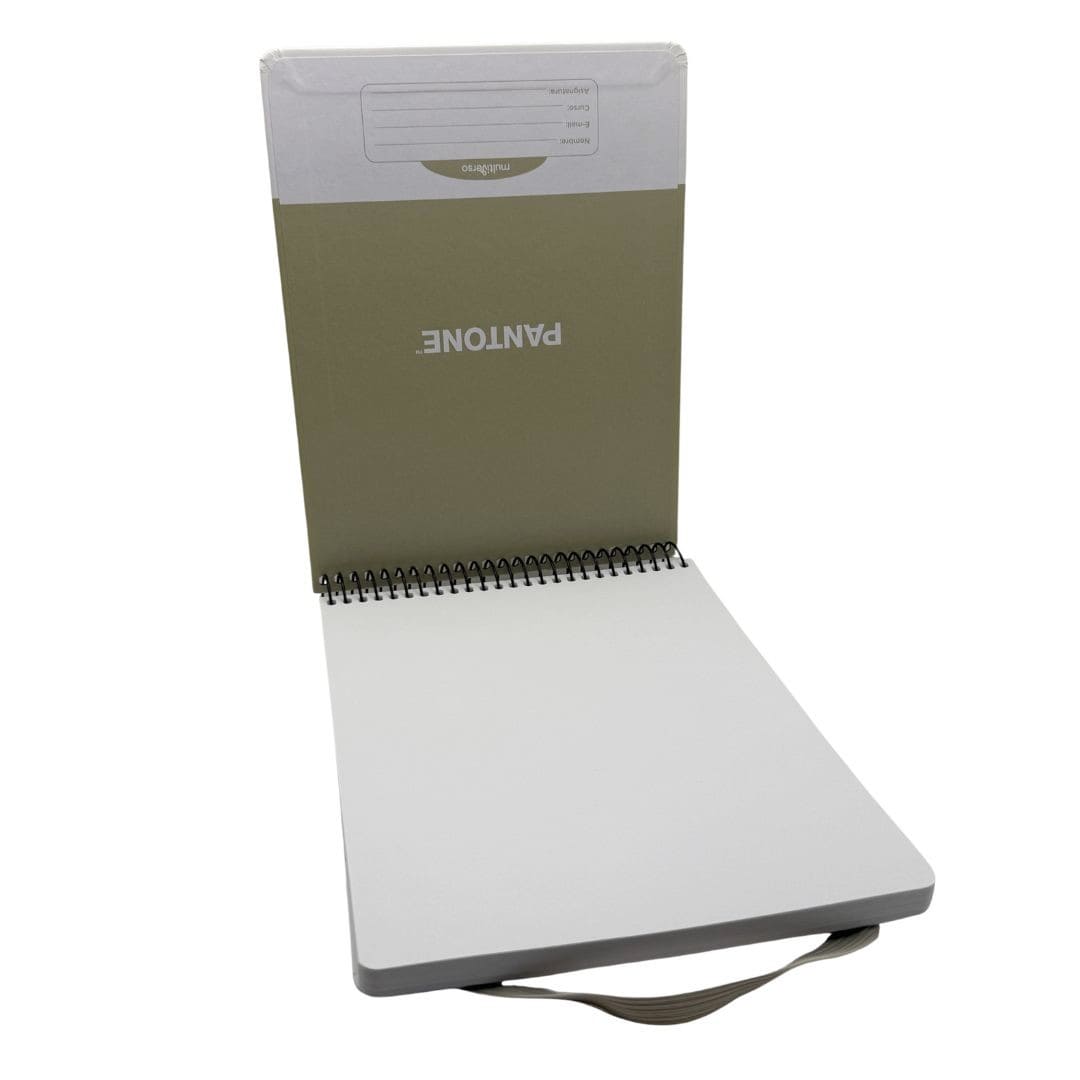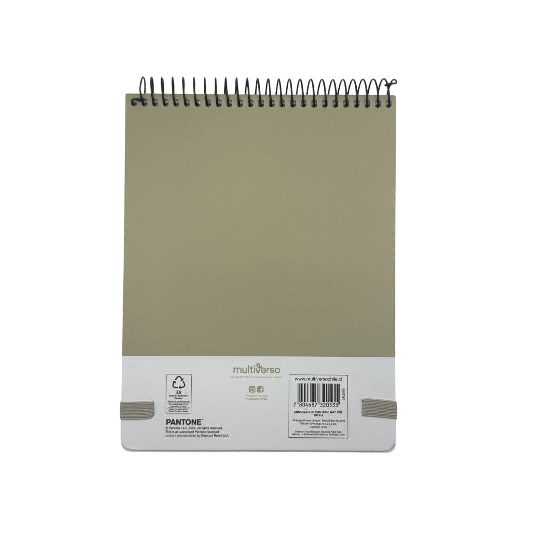 Hermosa croquera Pantone en tonos nature color con elástico para que elijas la que mas te guste, tapa dura, anillado metálico altamente resistente, posee 100 hojas lisas blancas de 80 g/m2., tamaño de la croquera 21,2 x 16cm. Producto por unidad.