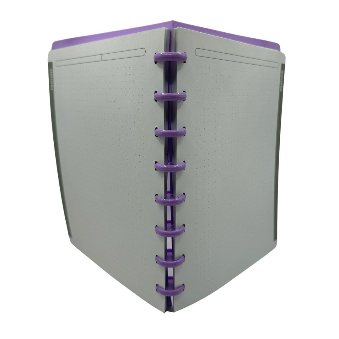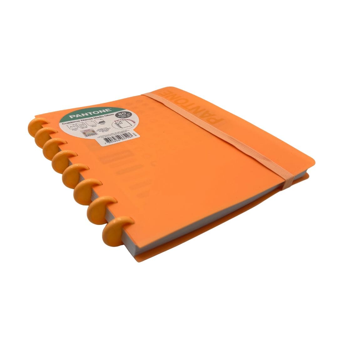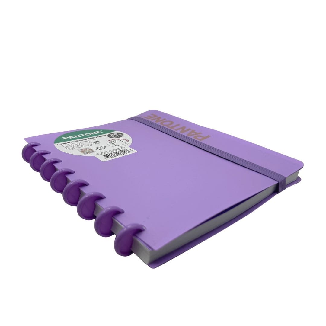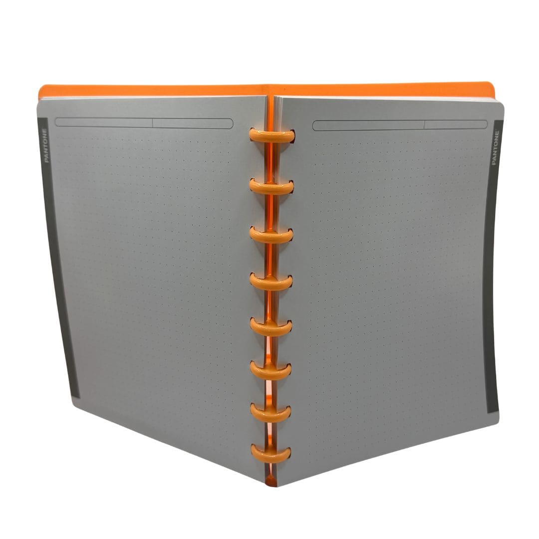 Hermoso cuaderno de discos Pantone, para que organices y personalices el orden de las hojas como tu quieras, disponible en 2 colores para que elijas el que mas te guste, tapa flexible, elástico plano, anillado con sistema de discos acrílicos, posee 80 hojas con diseño de puntos de 5mm. de 100 g/m2, tamaño medio oficio (17 x 21,2cm.).