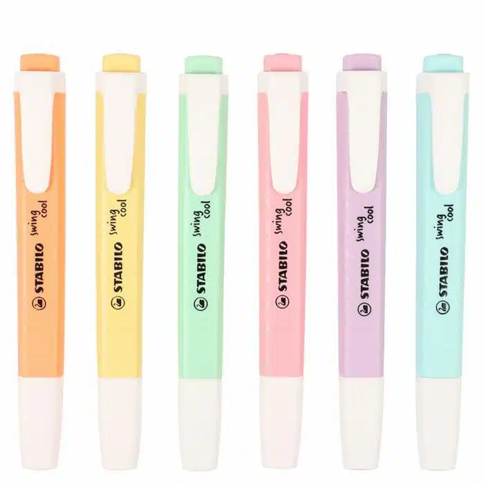 El nuevo STABILO swing cool Pastel Edition es ideal para estudiantes y todos aquellos que quieran llevarlo a todas partes. Estos subrayadores planos en 6 colores pastel sutiles llevan un práctico tapón con clip. Además, solo estará disponible durante un tiempo limitado.