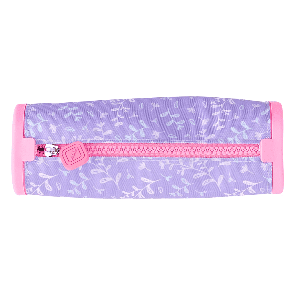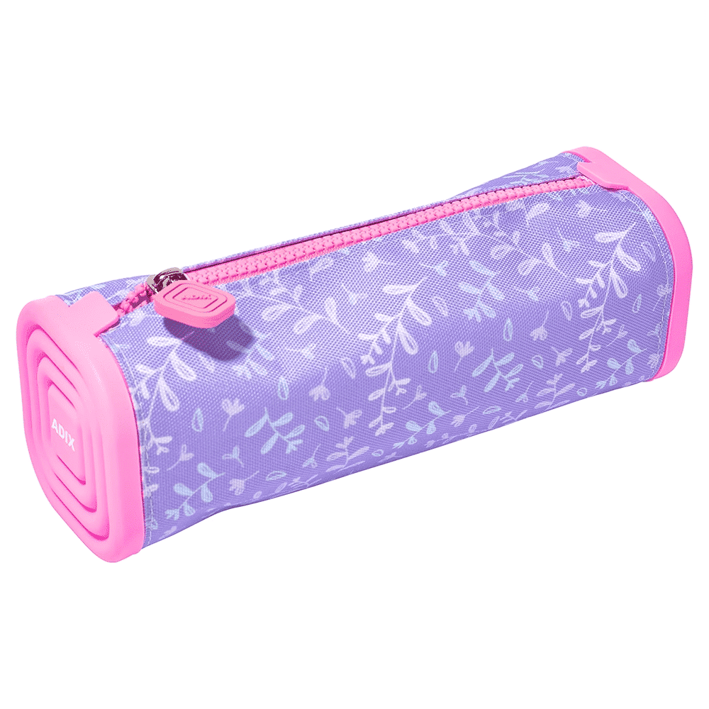 Estuche escolar rectangular con bordes de silicona.