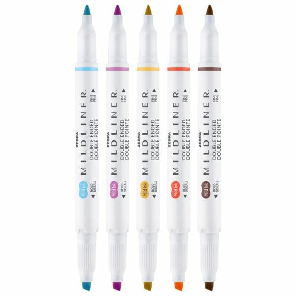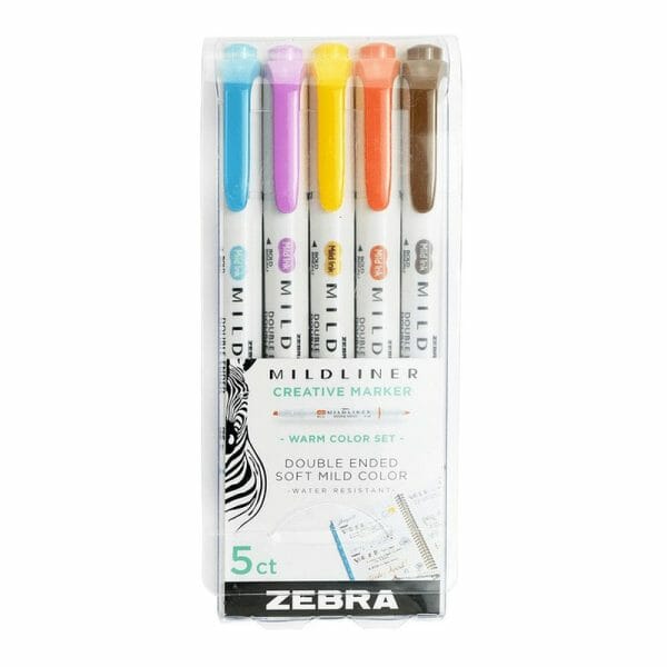 $890Set de 5 Destacadores Colores Cálidos Doble Punta Mildliner Creative Marker Zebra