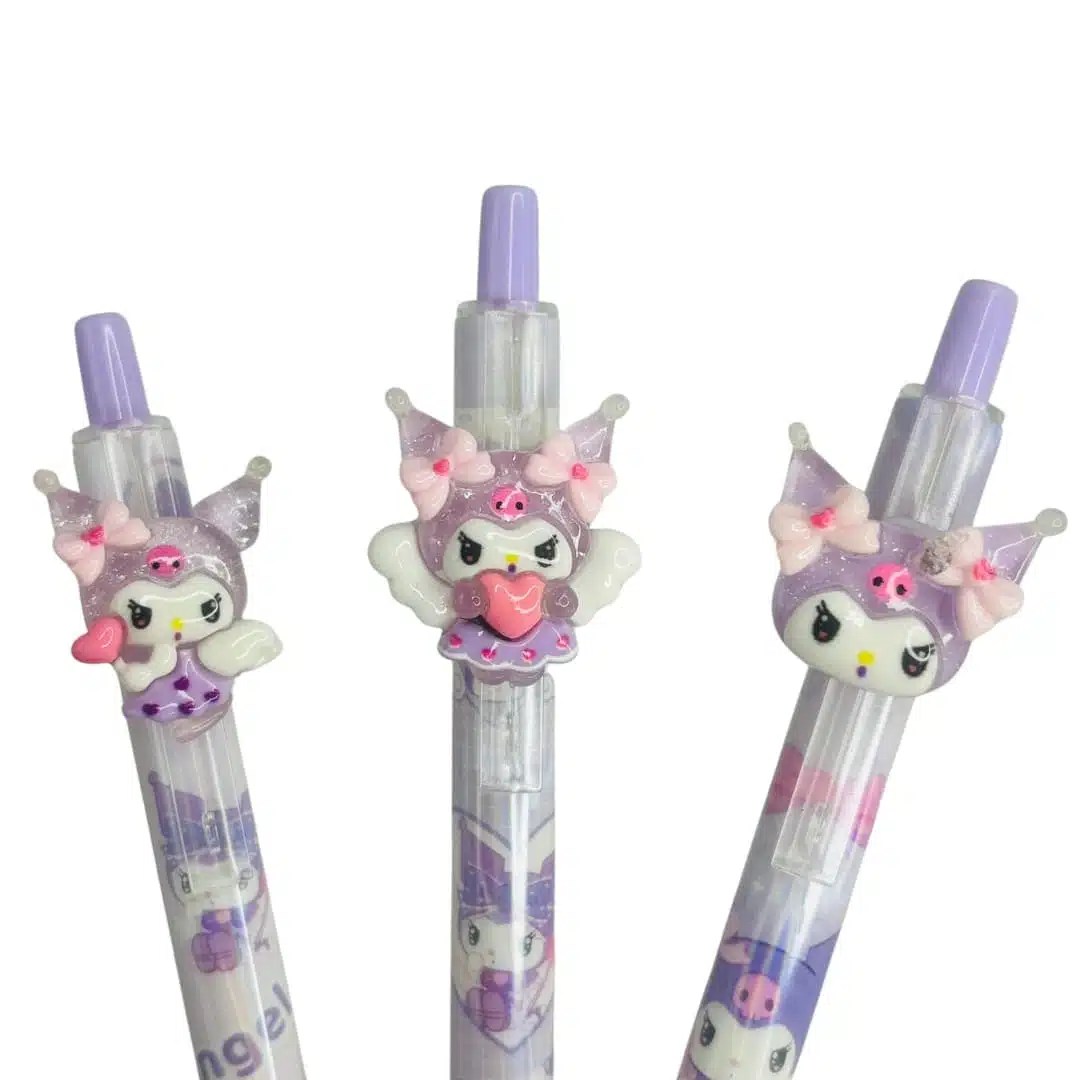 Lápiz tinta gel color de tinta negro de 0.5mm. Distintos diseños de Kuromi para elegir, producto por unidad.