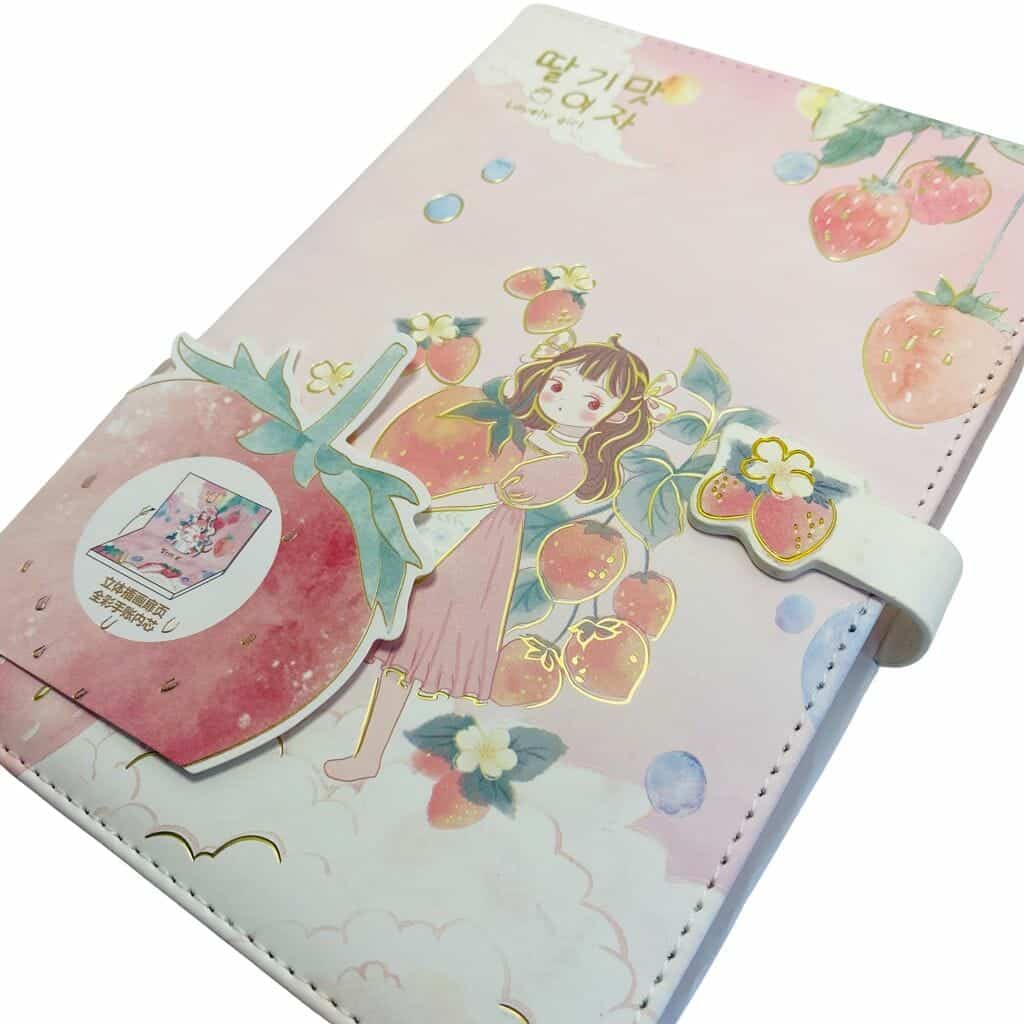 Libreta con tapa acolchada de 19cm. de largo por 13cm. de ancho, incluye 96 hojas con variados diseños y colores de hojas, tiene un broche imantado para cerrar la libreta, modelo Lovely Girl
