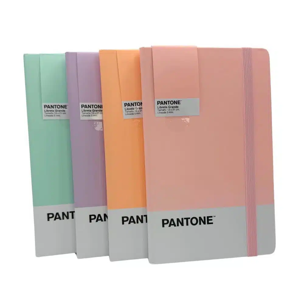 Hermosa libreta tamaño Grande (21x13cm.) marca Pantone con elástico y en distintos colores para que elijas la que mas te guste, tiene tapa dura, posee 100 hojas con diseño en líneas horizontales de 5mm. y de 80 g/m2. Producto por unidad.