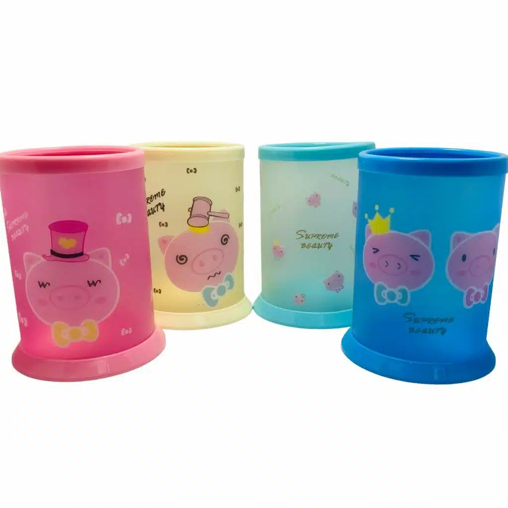 Portalápices de mica dura y opaca, muy rápido y fácil de armar, de 11cm. de alto por 7,5cm. de ancho (diámetro) con diseño de cerdito, distintos colores de portalápices para elegir, producto por unidad, no incluye lápices