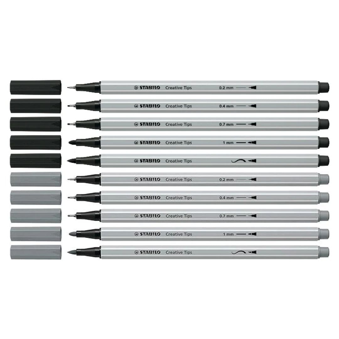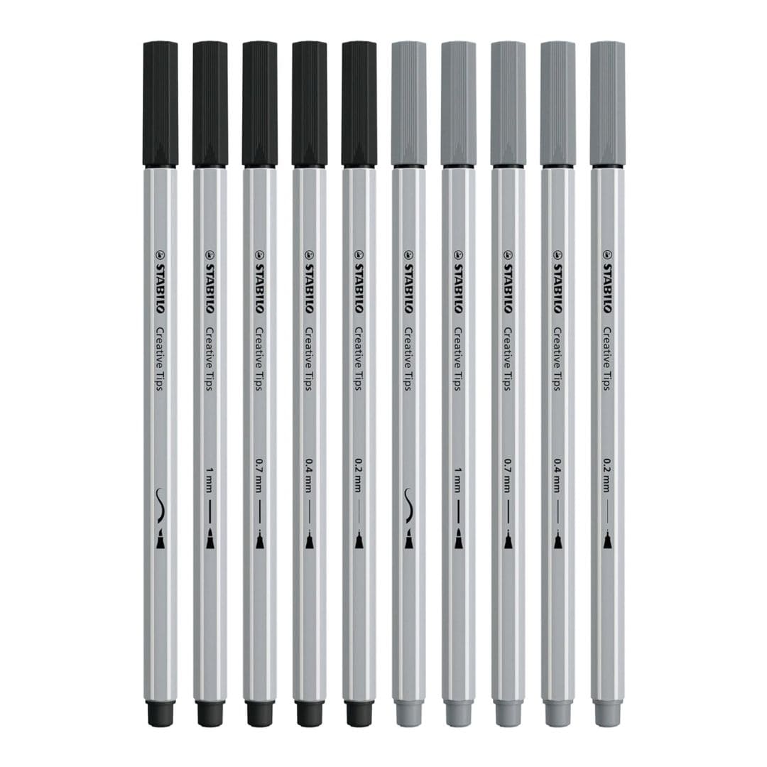 Set 10 Marcadores Creative Tips Arty Negros y Grises Stabilo