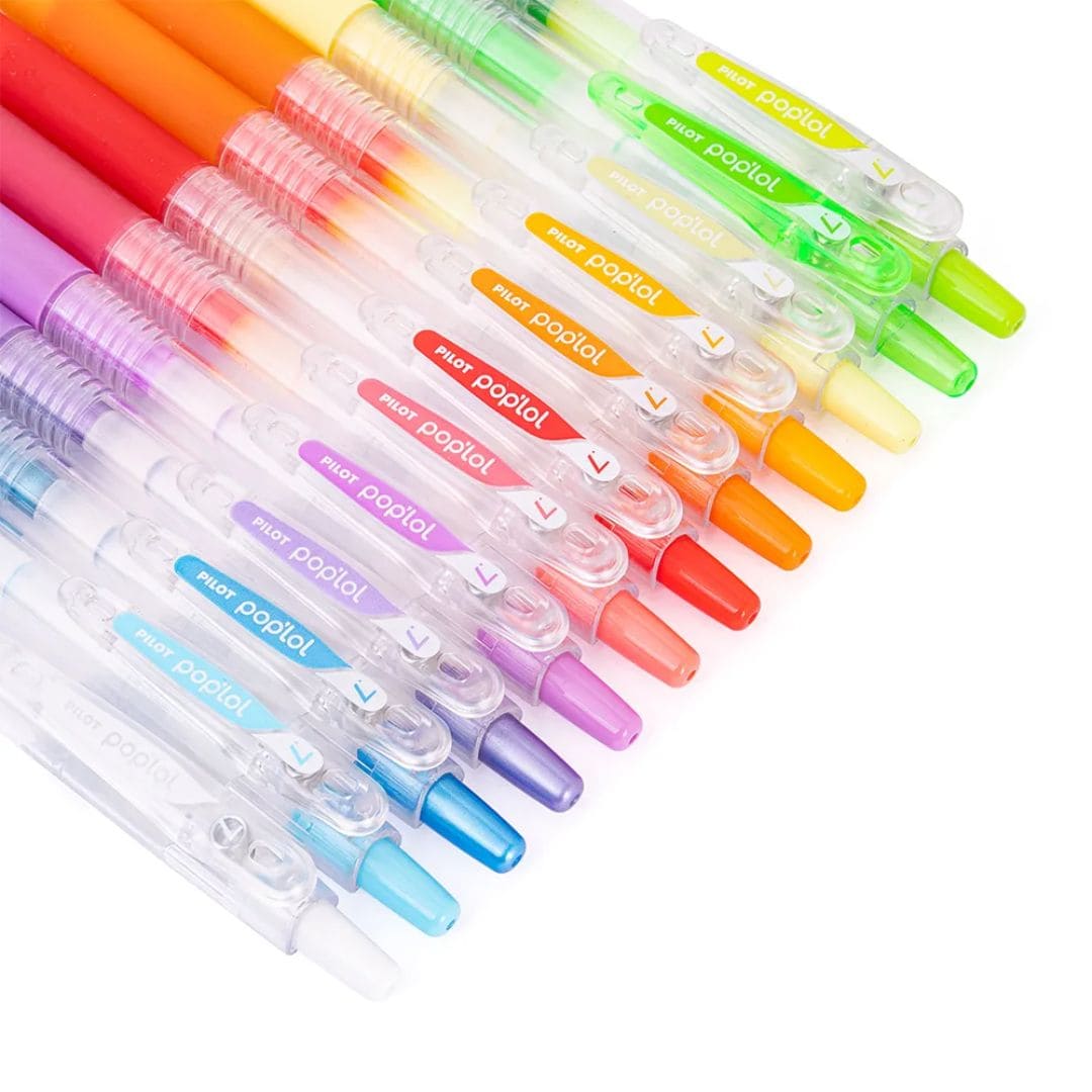 El Pilot Pop Lol es un lápiz de tinta gel retráctil con punta de 0.7 mm diseñado para ofrecer una escritura suave, fluida y cómoda, ideal tanto para estudiar como para proyectos creativos o ilustración. La tinta gel pigmentada produce colores vivos y definidos, resistentes al agua y a la luz, con trazos precisos y brillantes.