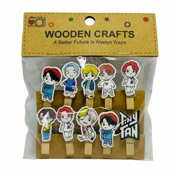 Set de 10 clips de madera, ideales para colgar fotos o notas incluye lazo arpillera, diseño de hámster