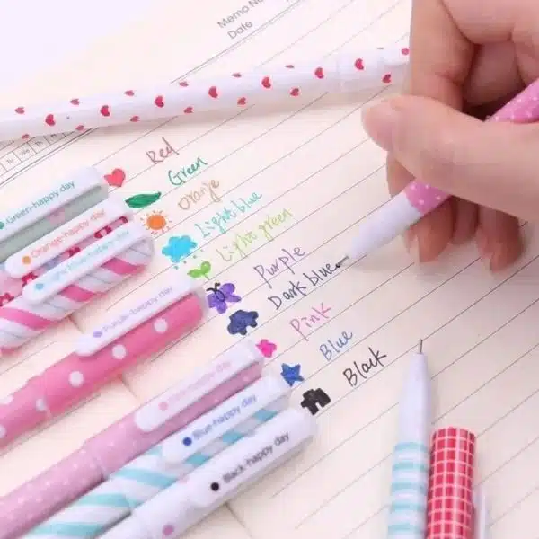 Set de 12 lápices tinta gel distintos colores con punta de 1.0mm, con tonalidades pasteles (sirven para hojas negras)