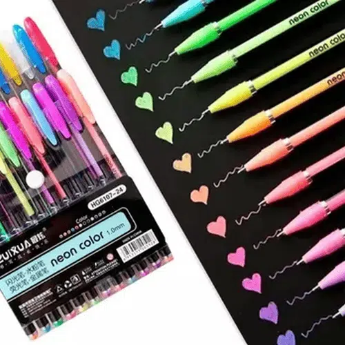 $1.490Set de 24 Lápices Tinta Gel 1.0mm Tonos Glitter y Pasteles