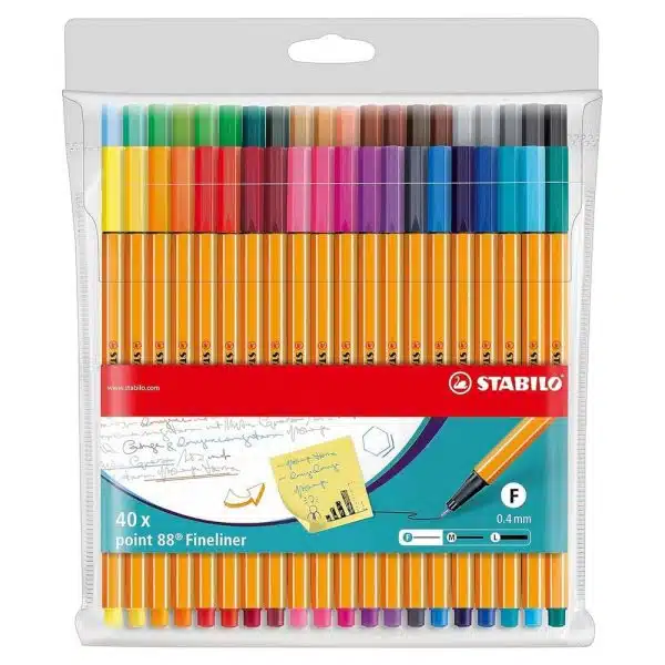 El STABILO point 88 de STABILO es el compañero perfecto para estudiantes y profesionales. Lanzado en 1977, este producto es apreciado en todo el mundo por su calidad y facilidad de uso. La famosa forma de cuerpo hexagonal del STABILO point 88 lo hace muy cómodo de agarrar, no se seca si está largos periodos sin tapa, no tendrás que preocuparte por nada.