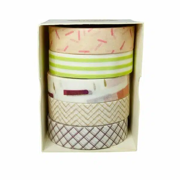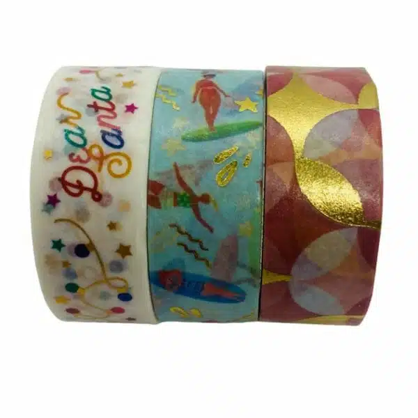 Set de 3 cintas washi tape con bellos detalles dorados, cada una es de 15mm. de ancho por 3m. de largo