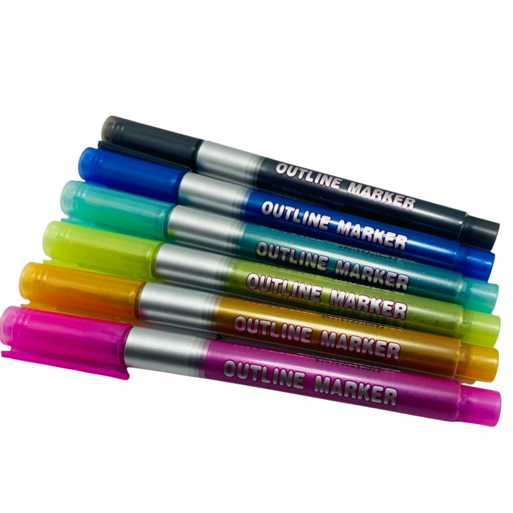 Set de 6 Marcadores Color Plateado Doble Línea con Borde de Color Bestdi