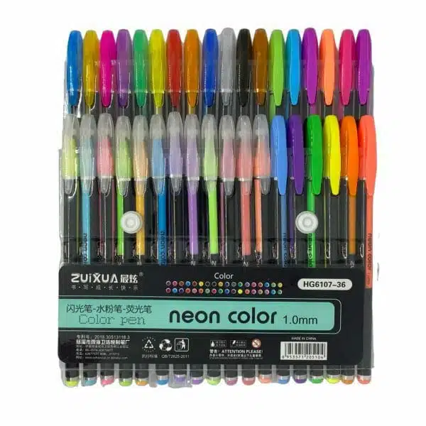 Set de 36 Lápices Tinta Gel 1.0mm Tonos Neón Glitter y Pasteles
